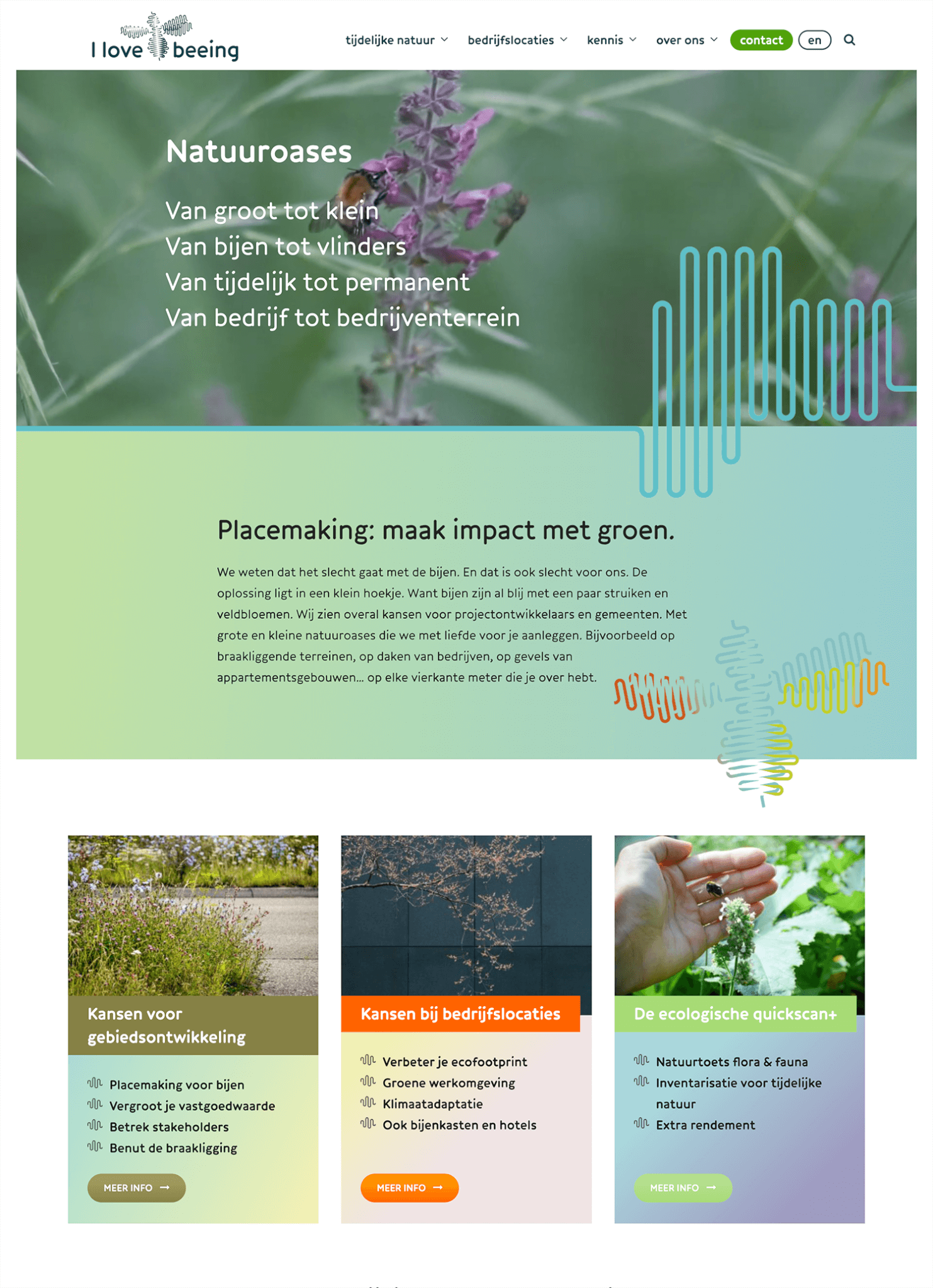 I Love Beeing werkt aan een groen en biodivers Nederland om de bij de ruimte te geven. De eerste jaren van bestaan zetten ze zich in voor de bij in de vorm van educatie en plaatsing van bijenkasten bij bedrijven. Inmiddels helpen ze ook bedrijven, projectontwikkelaars en gemeenten met de aanleg van natuuroases. Voor bijen èn mensen.